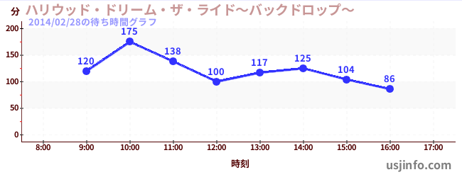 • ハリウッド・ドリーム・ザ・ライド〜バックドロップ〜$B$N(B2014年02月28日の待ち時間