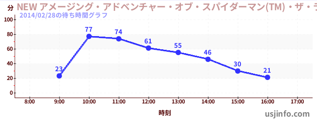 • NEW アメージング・アドベンチャー・オブ・スパイダーマン(TM)・ザ・ライド 4K3D$B$N(B2014年02月28日の待ち時間
