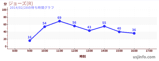 • ジョーズ(R)$B$N(B2014年02月28日の待ち時間