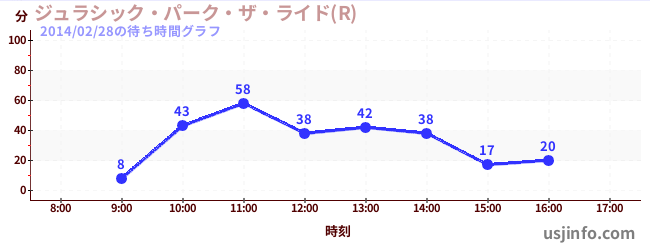 • ジュラシック・パーク・ザ・ライド(R)$B$N(B2014年02月28日の待ち時間