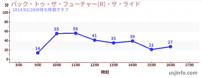 • バック・トゥ・ザ・フューチャー(R)・ザ・ライド$B$N(B2014年02月28日の待ち時間