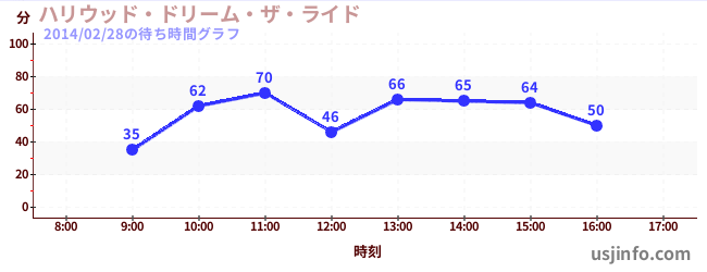 • ハリウッド・ドリーム・ザ・ライド$B$N(B2014年02月28日の待ち時間