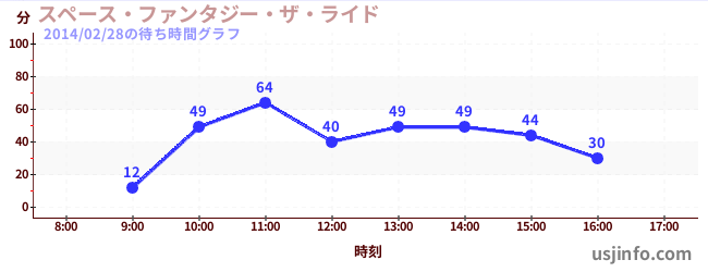 • スペース・ファンタジー・ザ・ライド$B$N(B2014年02月28日の待ち時間