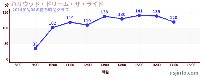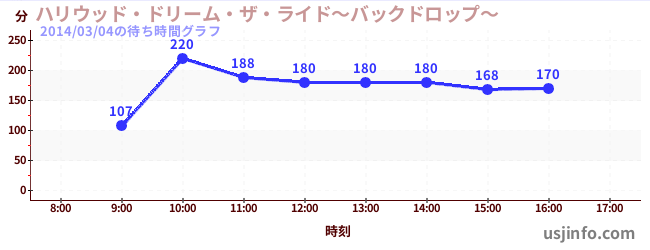 • ハリウッド・ドリーム・ザ・ライド〜バックドロップ〜$B$N(B2014年03月04日の待ち時間