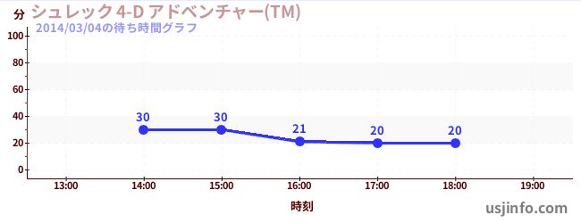 • シュレック 4-D アドベンチャー(TM)$B$N(B2014年03月04日の待ち時間