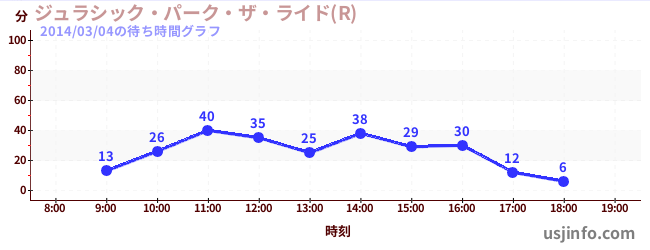 • ジュラシック・パーク・ザ・ライド(R)$B$N(B2014年03月04日の待ち時間