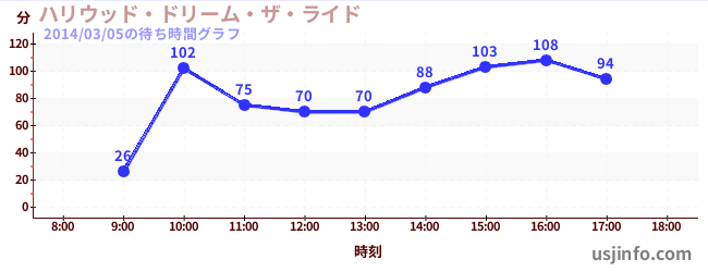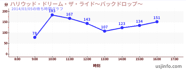 • ハリウッド・ドリーム・ザ・ライド〜バックドロップ〜$B$N(B2014年03月05日の待ち時間