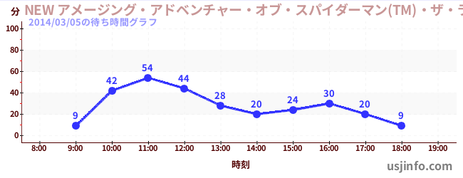 • NEW アメージング・アドベンチャー・オブ・スパイダーマン(TM)・ザ・ライド 4K3D$B$N(B2014年03月05日の待ち時間