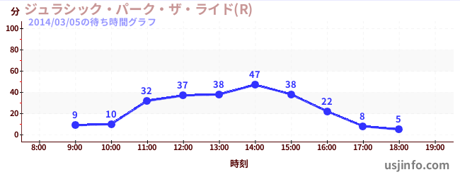 • ジュラシック・パーク・ザ・ライド(R)$B$N(B2014年03月05日の待ち時間
