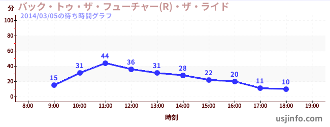 • バック・トゥ・ザ・フューチャー(R)・ザ・ライド$B$N(B2014年03月05日の待ち時間