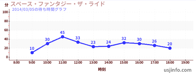 • スペース・ファンタジー・ザ・ライド$B$N(B2014年03月05日の待ち時間