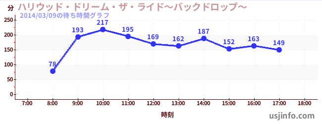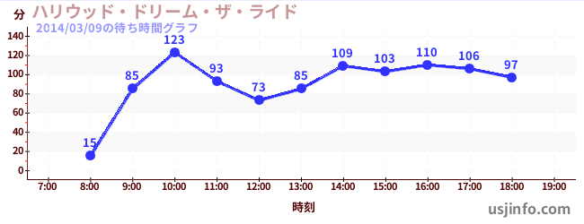 • ハリウッド・ドリーム・ザ・ライド〜バックドロップ〜$B$N(B2014年03月09日の待ち時間
