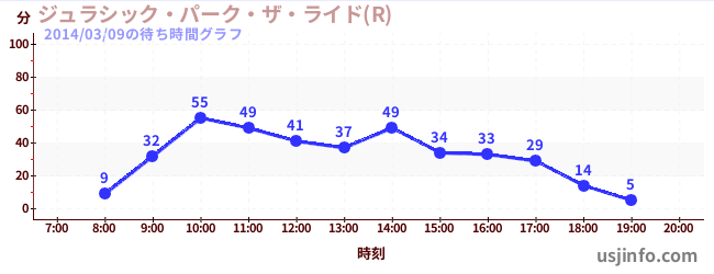 • ジュラシック・パーク・ザ・ライド(R)$B$N(B2014年03月09日の待ち時間