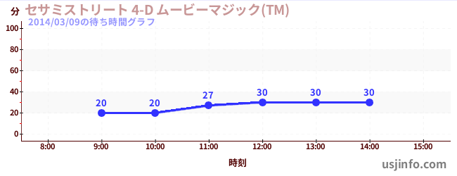 • セサミストリート 4-D ムービーマジック(TM)$B$N(B2014年03月09日の待ち時間