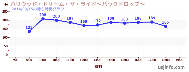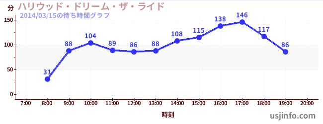 • ハリウッド・ドリーム・ザ・ライド〜バックドロップ〜$B$N(B2014年03月15日の待ち時間
