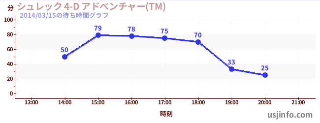 • シュレック 4-D アドベンチャー(TM)$B$N(B2014年03月15日の待ち時間