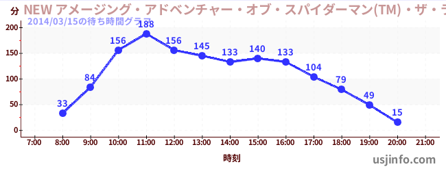 • NEW アメージング・アドベンチャー・オブ・スパイダーマン(TM)・ザ・ライド 4K3D$B$N(B2014年03月15日の待ち時間