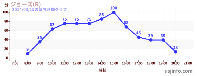• ジョーズ(R)$B$N(B2014年03月15日の待ち時間