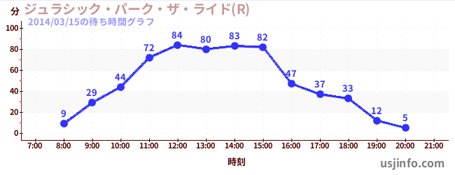 • ジュラシック・パーク・ザ・ライド(R)$B$N(B2014年03月15日の待ち時間