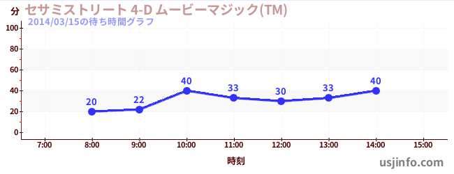 • セサミストリート 4-D ムービーマジック(TM)$B$N(B2014年03月15日の待ち時間