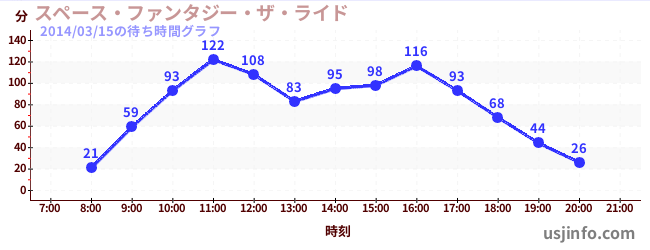 • スペース・ファンタジー・ザ・ライド$B$N(B2014年03月15日の待ち時間