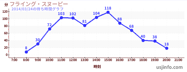 • フライング・スヌーピー$B$N(B2014年03月24日の待ち時間