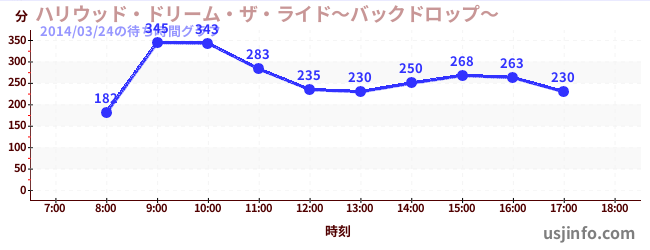 • ハリウッド・ドリーム・ザ・ライド〜バックドロップ〜$B$N(B2014年03月24日の待ち時間