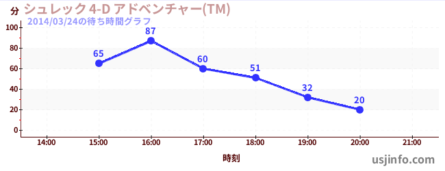 • シュレック 4-D アドベンチャー(TM)$B$N(B2014年03月24日の待ち時間