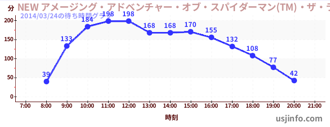 • NEW アメージング・アドベンチャー・オブ・スパイダーマン(TM)・ザ・ライド 4K3D$B$N(B2014年03月24日の待ち時間