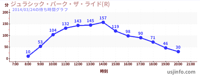 • ジュラシック・パーク・ザ・ライド(R)$B$N(B2014年03月24日の待ち時間
