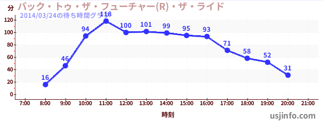 • バック・トゥ・ザ・フューチャー(R)・ザ・ライド$B$N(B2014年03月24日の待ち時間