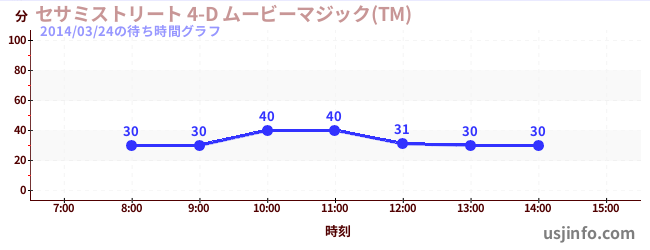 • セサミストリート 4-D ムービーマジック(TM)$B$N(B2014年03月24日の待ち時間