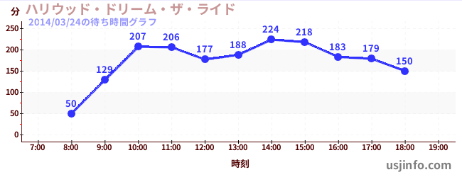 • ハリウッド・ドリーム・ザ・ライド$B$N(B2014年03月24日の待ち時間