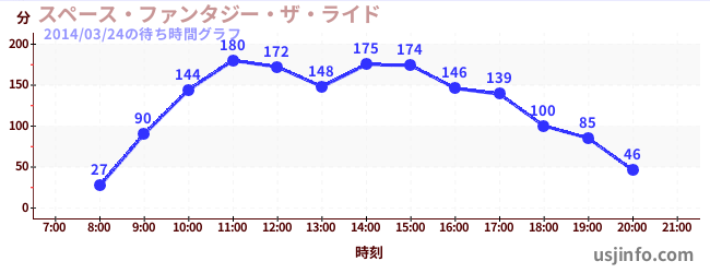 • スペース・ファンタジー・ザ・ライド$B$N(B2014年03月24日の待ち時間