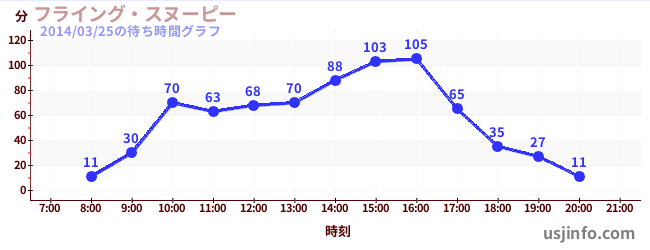 • フライング・スヌーピー$B$N(B2014年03月25日の待ち時間