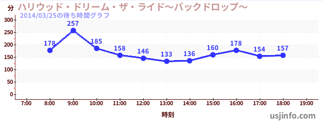 • ハリウッド・ドリーム・ザ・ライド〜バックドロップ〜$B$N(B2014年03月25日の待ち時間