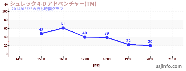 • シュレック 4-D アドベンチャー(TM)$B$N(B2014年03月25日の待ち時間