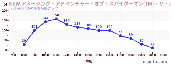 • NEW アメージング・アドベンチャー・オブ・スパイダーマン(TM)・ザ・ライド 4K3D$B$N(B2014年03月25日の待ち時間