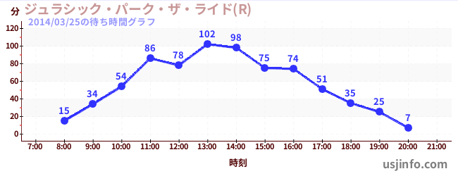 • ジュラシック・パーク・ザ・ライド(R)$B$N(B2014年03月25日の待ち時間