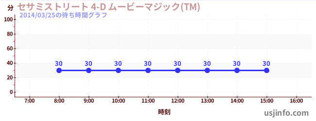 • セサミストリート 4-D ムービーマジック(TM)$B$N(B2014年03月25日の待ち時間