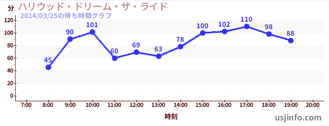 • ハリウッド・ドリーム・ザ・ライド$B$N(B2014年03月25日の待ち時間