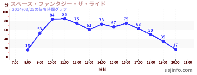 • スペース・ファンタジー・ザ・ライド$B$N(B2014年03月25日の待ち時間