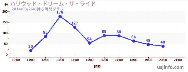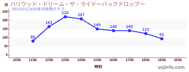 • ハリウッド・ドリーム・ザ・ライド$B$N(B2014年03月26日の待ち時間