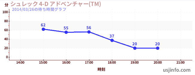• シュレック 4-D アドベンチャー(TM)$B$N(B2014年03月26日の待ち時間