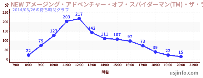 • NEW アメージング・アドベンチャー・オブ・スパイダーマン(TM)・ザ・ライド 4K3D$B$N(B2014年03月26日の待ち時間