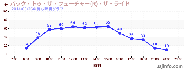 • バック・トゥ・ザ・フューチャー(R)・ザ・ライド$B$N(B2014年03月26日の待ち時間