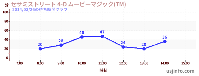 • セサミストリート 4-D ムービーマジック(TM)$B$N(B2014年03月26日の待ち時間
