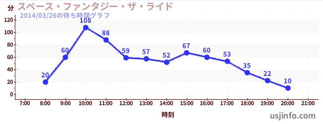 • スペース・ファンタジー・ザ・ライド$B$N(B2014年03月26日の待ち時間