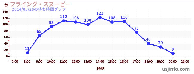 • フライング・スヌーピー$B$N(B2014年03月28日の待ち時間