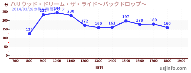 • ハリウッド・ドリーム・ザ・ライド〜バックドロップ〜$B$N(B2014年03月28日の待ち時間